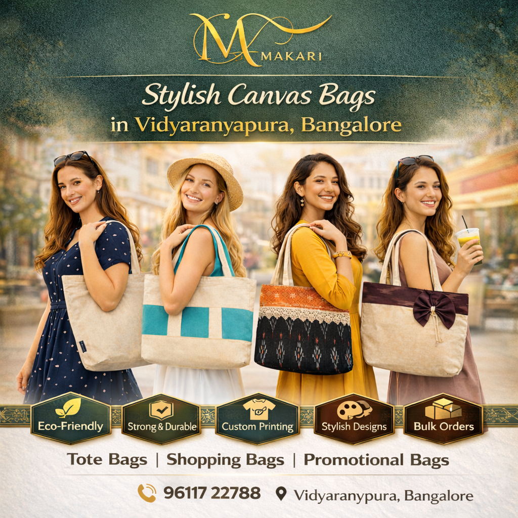 In today’s eco-conscious world, canvas bags are becoming the preferred choice for shopping, daily use, and business promotions. If you are searching for stylish canvas bags in Vidyaranyapura, Bangalore, Makari offers a wide collection of premium-quality bags designed to combine durability, functionality, and modern style. Our canvas bags are crafted using strong, eco-friendly materials that are ideal for long-term use while supporting sustainable living.